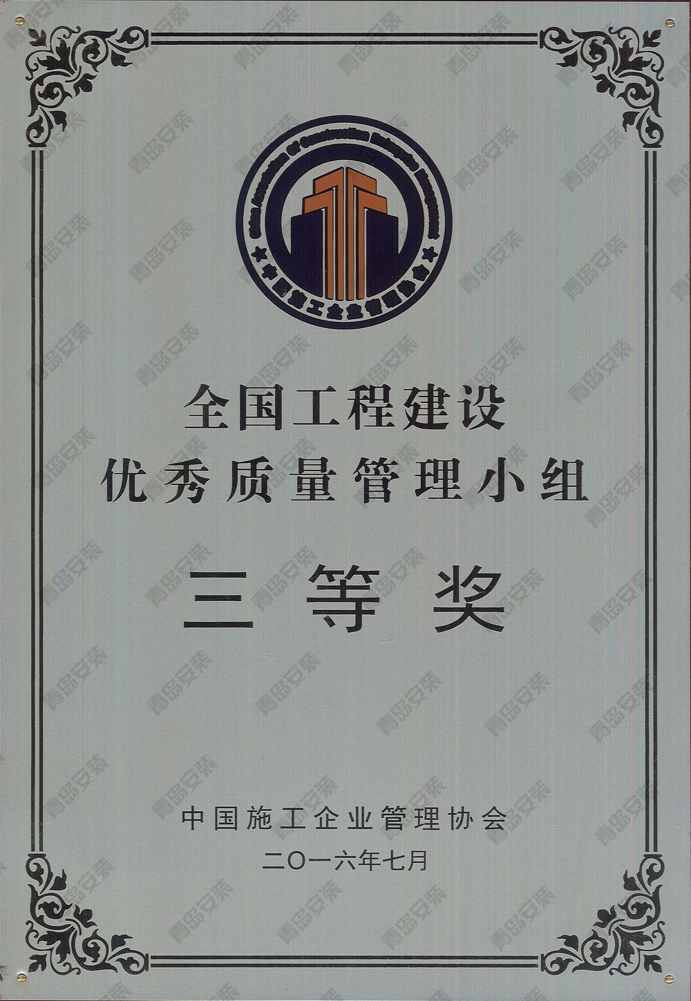 2016年度全國(guó)工程建設(shè)優(yōu)秀質(zhì)量管理小組三等獎(jiǎng)